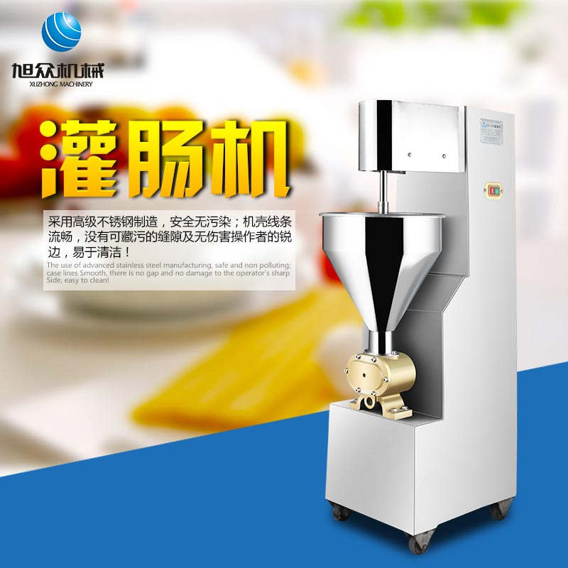 SZ-200灌腸機(jī),適合灌制各種香腸、紅腸、臘腸及糊狀制品。本機(jī)使用敞開式不銹鋼料斗,適用于連續(xù)添加物料;與灌裝手接觸部件全部采用優(yōu)質(zhì)不銹鋼制作以防生銹;該機(jī)自動貨程度高,技術(shù)先進(jìn)、性能穩(wěn)定、操作簡便、工作效率高,具有不破壞物料成份,保質(zhì)、保鮮等特點。