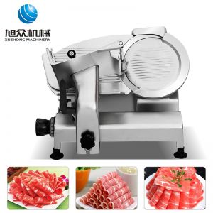 臺式半自動切片機,適合切無骨肉類和其他類似榨菜帶有彈性的食物,把原材料肉切成肉片,并可自動成卷狀??汕信H馄⒀蛉馄?/p>