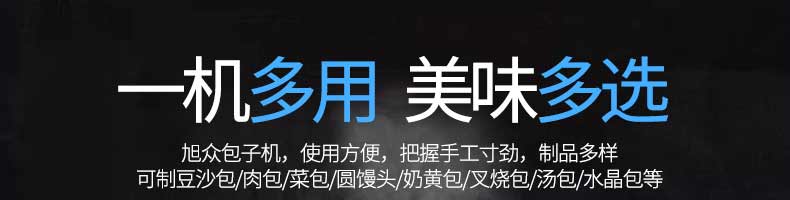 名稱旭眾30單餡斗包子機 電源220/380V(見機器名牌) 功率2.5kw 產(chǎn)量0-1800個/小時 尺寸1440*680*1420mm(包括輸送帶) 重量300KG 規(guī)格20-100克/個 其他