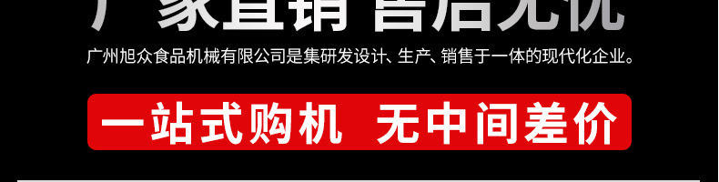 廣州旭眾食品機(jī)械有限公司是一家集科研開發(fā),生產(chǎn)設(shè)計,營銷服務(wù)為一體的現(xiàn)代化生產(chǎn)企業(yè)?,F(xiàn)代化生產(chǎn)車間,精湛制造技術(shù),所產(chǎn)機(jī)械歷經(jīng)市場重重考驗,不斷贏得海內(nèi)外客戶的贊譽(yù)。