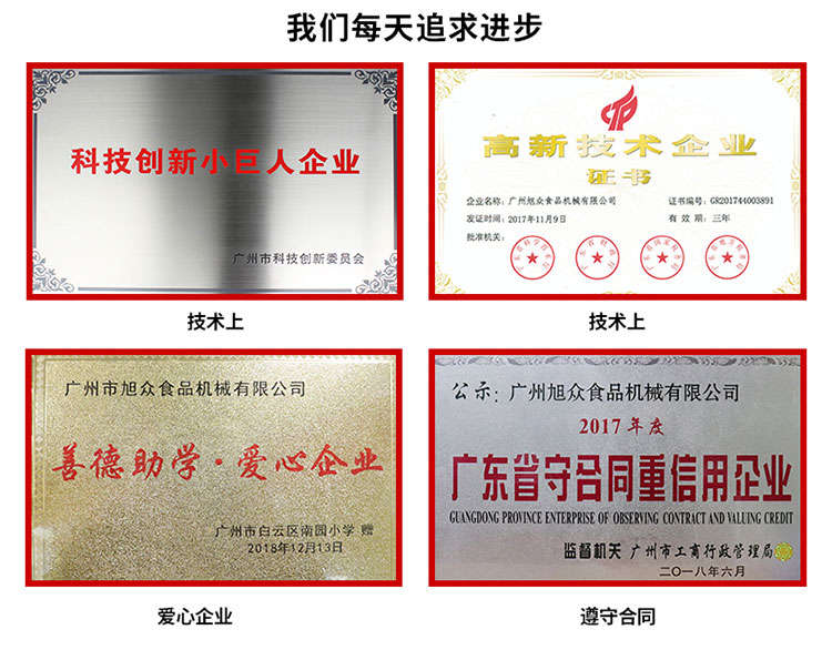 廣州旭眾食品機(jī)械有限公司是一家集科研開(kāi)發(fā),生產(chǎn)設(shè)計(jì),營(yíng)銷(xiāo)服務(wù)為一體的現(xiàn)代化生產(chǎn)企業(yè)。現(xiàn)代化生產(chǎn)車(chē)間,精湛制造技術(shù),所產(chǎn)機(jī)械歷經(jīng)市場(chǎng)重重考驗(yàn),不斷贏得海內(nèi)外客戶的贊譽(yù)。