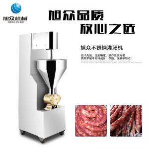 SZ-200灌腸機(jī),適合灌制各種香腸、紅腸、臘腸及糊狀制品。本機(jī)使用敞開式不銹鋼料斗,適用于連續(xù)添加物料;與灌裝手接觸部件全部采用優(yōu)質(zhì)不銹鋼制作以防生銹;該機(jī)自動貨程度高,技術(shù)先進(jìn)、性能穩(wěn)定、操作簡便、工作效率高,具有不破壞物料成份,保質(zhì)、保鮮等特點。