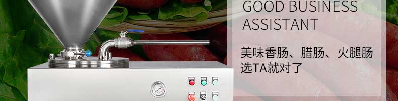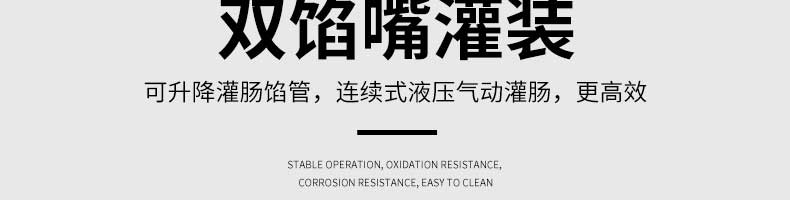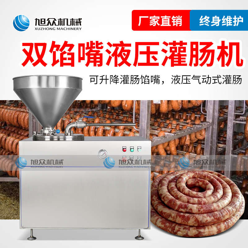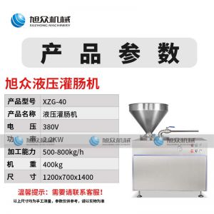 XZG-40液壓灌腸機(jī),液壓灌腸機(jī),可升降灌腸餡管,液壓氣動式灌腸。灌注較干的餡料效率更佳,各種美食由你制作。旭眾灌腸機(jī),為灌腸而生,健康更美味。
