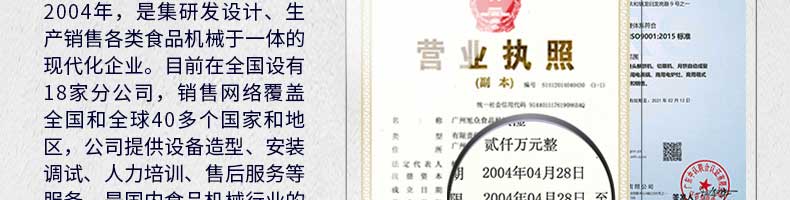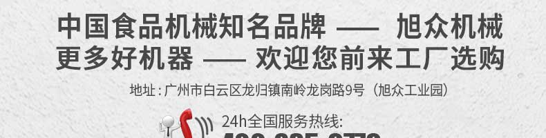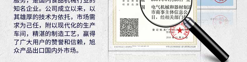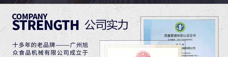 廣州旭眾食品機(jī)械有限公司是一家集科研開發(fā),生產(chǎn)設(shè)計,營銷服務(wù)為一體的現(xiàn)代化生產(chǎn)企業(yè)。現(xiàn)代化生產(chǎn)車間,精湛制造技術(shù),所產(chǎn)機(jī)械歷經(jīng)市場重重考驗(yàn),不斷贏得海內(nèi)外客戶的贊譽(yù)。