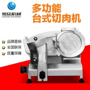 臺式全自動切片機,適合切無骨肉類和其他類似榨菜帶有彈性的食物,把原材料肉切成肉片,并可自動成卷狀。可切牛肉片、羊肉片等