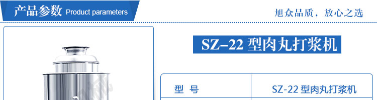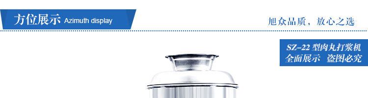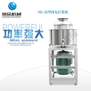 SZ-22型肉丸打漿機(jī),本機(jī)裝肉用桶子采用不銹鋼制造,達(dá)到衛(wèi)生要求,肉桶外罩和桶底裝有冷卻裝置,確保肉漿新鮮。比手工的打漿更精細(xì),所產(chǎn)肉丸、魚丸彈性好,色澤潔白。