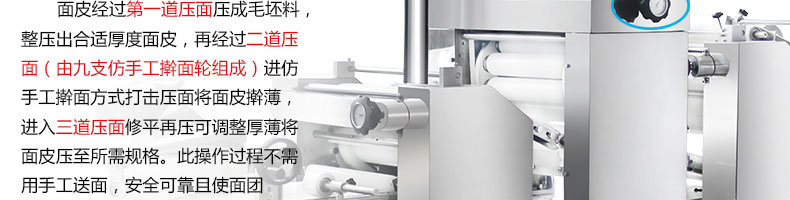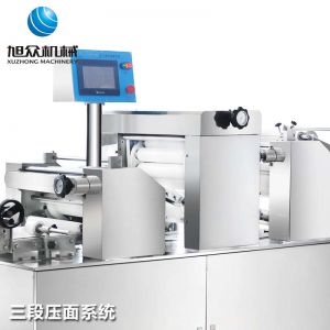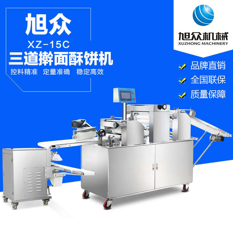 xz-15c三道搟面酥餅機,仿手工制作面食產(chǎn)品的機型,占地面積小,重量輕,運用搟面杖壓面和打擊面團,以保證高面筋性和面帶的密度,并綜合考慮面食的口感而研發(fā)。可生產(chǎn)東北糖酥餅,東北大香酥餅,蘇式月餅,芝麻餅,鮮花餅,老婆餅。購機免費提供工藝技術(shù)